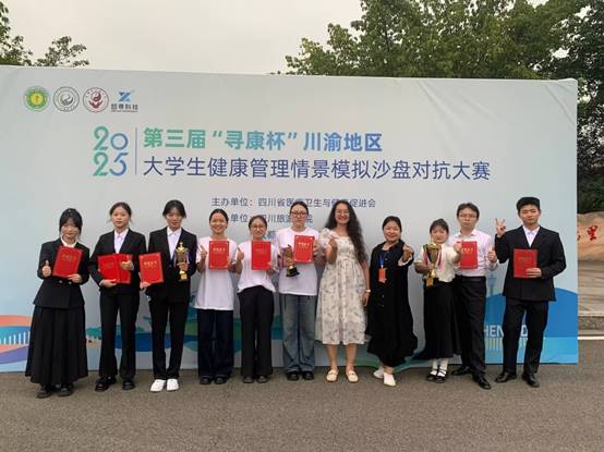 2025年9月27日,在由四川省医疗卫生与健康促进会主办,四川旅游学院、成都中医药大学承办的“川渝地区健康服务与管理行业沙盘模拟竞赛”中,我院选派的2023级健康服务与管理专业学子表现突出,斩获特等奖1项、一等奖1项、二等奖1项,并荣获“最佳健康管理情景模拟单项奖”,彰显了健管学子优异的竞争实力和良好的精神风貌。