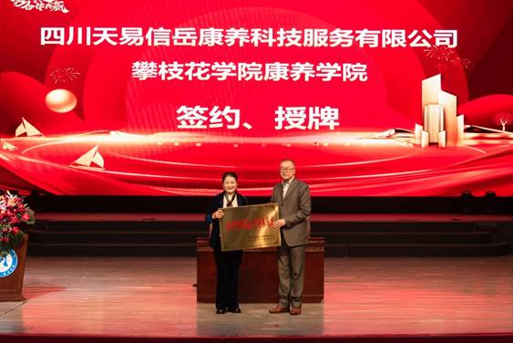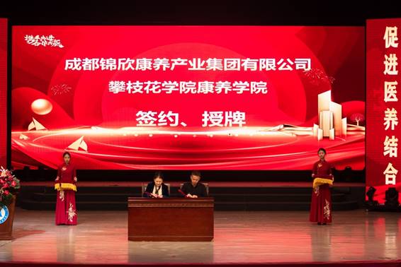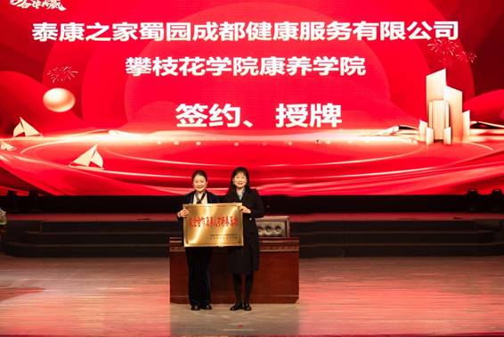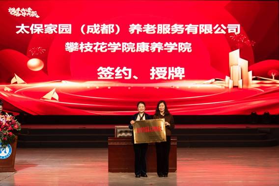 随后举行了隆重的校企合作康养人才培养基地签约及授牌仪式:四川省养老服务中心为攀枝花学院授牌,进一步深化政校合作;成都锦欣康养产业集团有限公司、泰康之家蜀园成都健康服务有限公司、太保家园(成都)养老服务有限公司、四川天易信岳康养科技服务有限公司、四川德养健康管理有限公司分别与康养学院完成签约及授牌,标志着多方将在人才培养、实习实训、就业创业等领域开展深度合作,为康养专业学生搭建“学习-实践-就业”一体化成长通道。