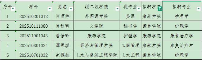 本周四(2026年3月5日)下午15:30,西苑办公楼(现笃行楼)4楼413会议室,请以下转康养学院的学生带上转专业申请表(转出学院盖章版)、2025-2026-1学期成绩单(转出学院盖章)、个人转专业申请(写明转专业原因、个人规划等)以及其他材料(如证书、CET-4成绩等),请准时参加(迟到视为放弃)。