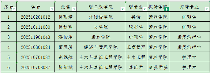 本周四(2026年3月5日)下午15:30,西苑办公楼(现笃行楼)4楼413会议室,请以下转康养学院的学生带上转专业申请表(转出学院盖章版)、2025-2026-1学期成绩单(转出学院盖章)、个人转专业申请(写明转专业原因、个人规划等)以及其他材料(如证书、CET-4成绩等),请准时参加(迟到视为放弃)。
